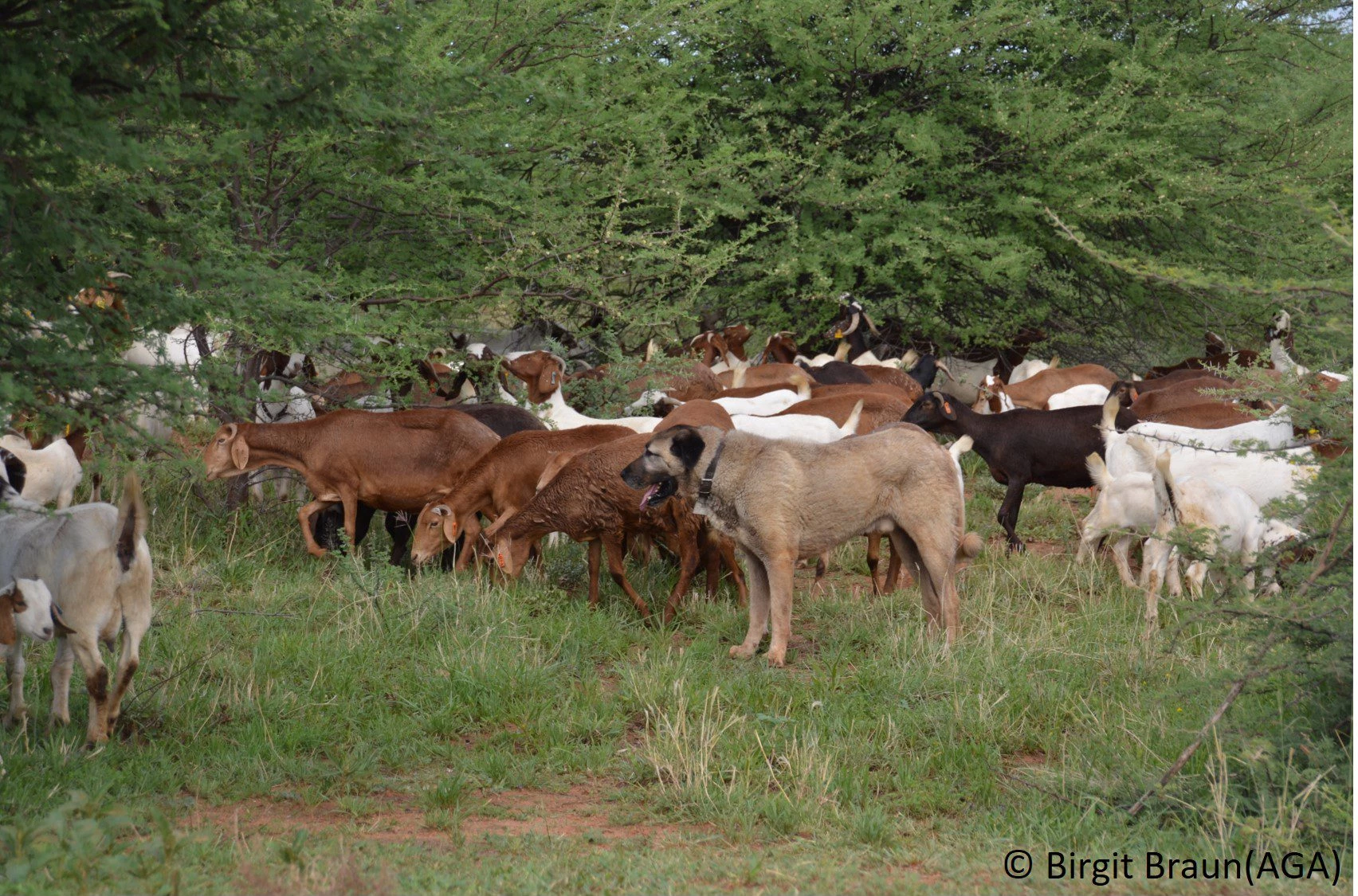 Die Aktionsgemeinschaft Artenschutz (AGA) setzt sich seit über 30 Jahren für den Schutz bedrohter Tierarten und den Erhalt ihres Lebensraumes ein. Im Rahmen ihres Schutzprojektes setzt die AGA auf unterschiedliche Ansätze, um den Mensch-Wildtier-Konflikt zu lösen. Ein wichtiger Punkt ist der direkte Schutz der Viehherden. Die AGA finanziert die Zucht und Ausbildung von speziellen Herdenschutzhunden. Dabei handelt es um den Kangal, ein türkischer Herdenschutzhund, der bereits seit dem 12. Jahrhundert zum Schutz von Viehherden eingesetzt wird. Dabei sollen die Hunde keine Geparde angreifen. Durch ihre Anwesenheit und ihr Gebell werden die Katzen vergrämt. Auch andere Raubtiere wie Leoparden oder Paviane werden durch die Kangale ferngehalten. Zusätzlich erhalten die Farmer eine Schulung zum Thema Herdenschutz und eine Einführung in die „Geparden-freundliche“ Nutztierhaltung. Außerdem haben sie die Möglichkeit an weiterführenden Kursen und Seminaren teilnehmen.